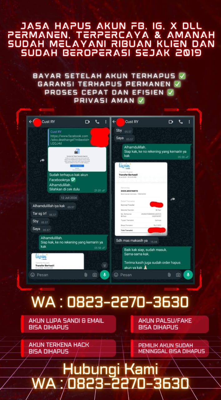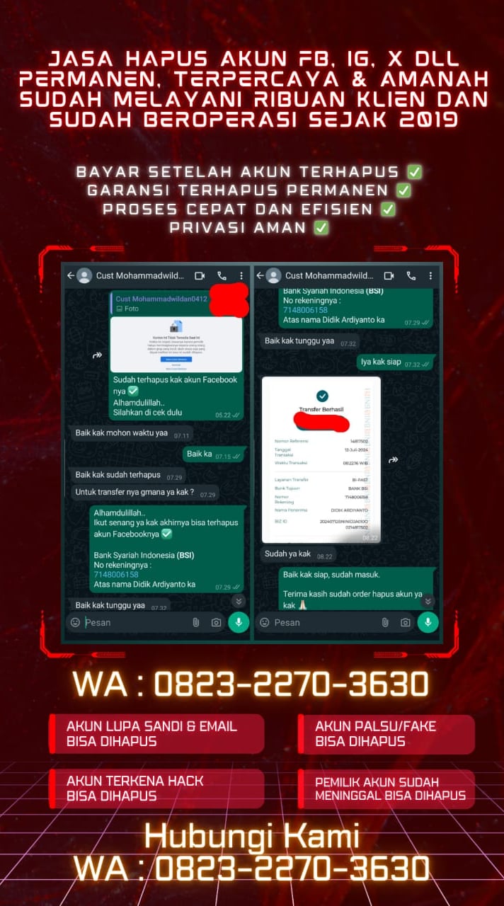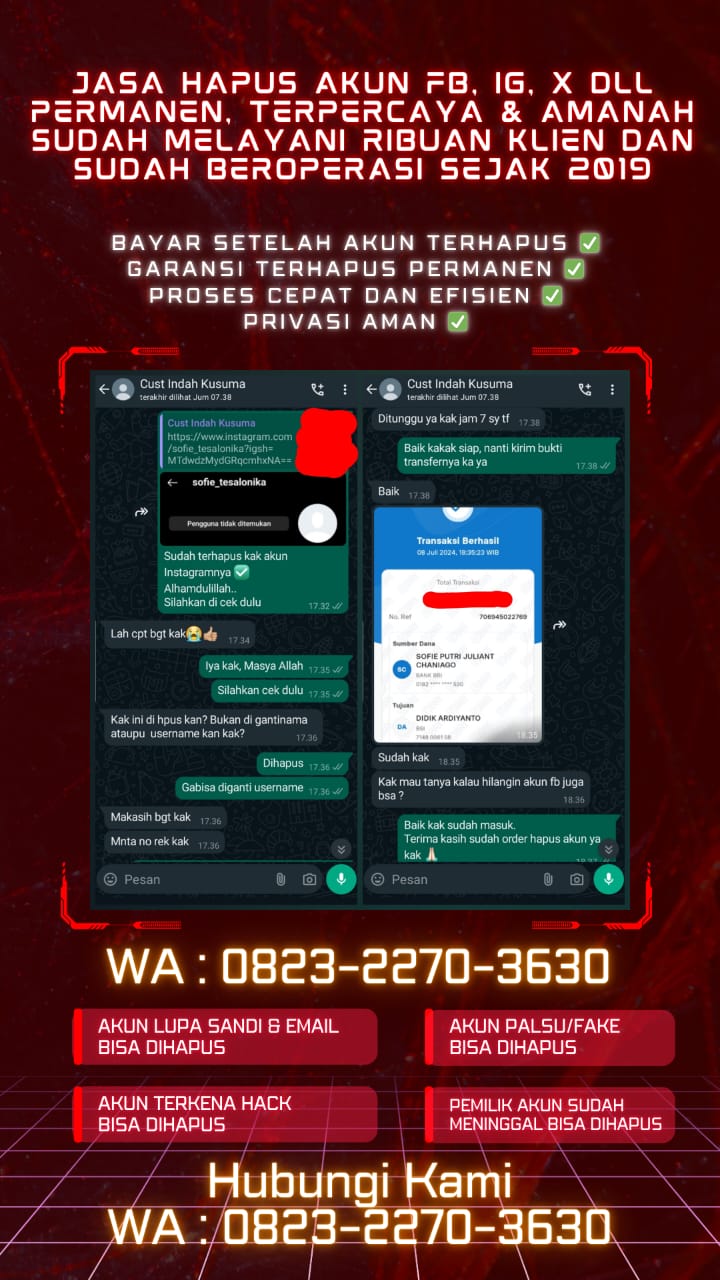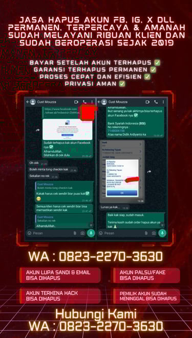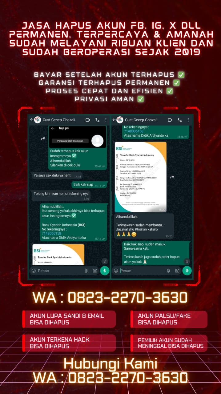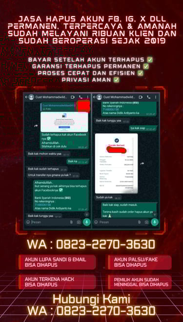 Hubungi kami sekarang untuk solusi mudah dan terpercaya dalam menghapus akun sosmed anda WA : 0823-2270-3630.